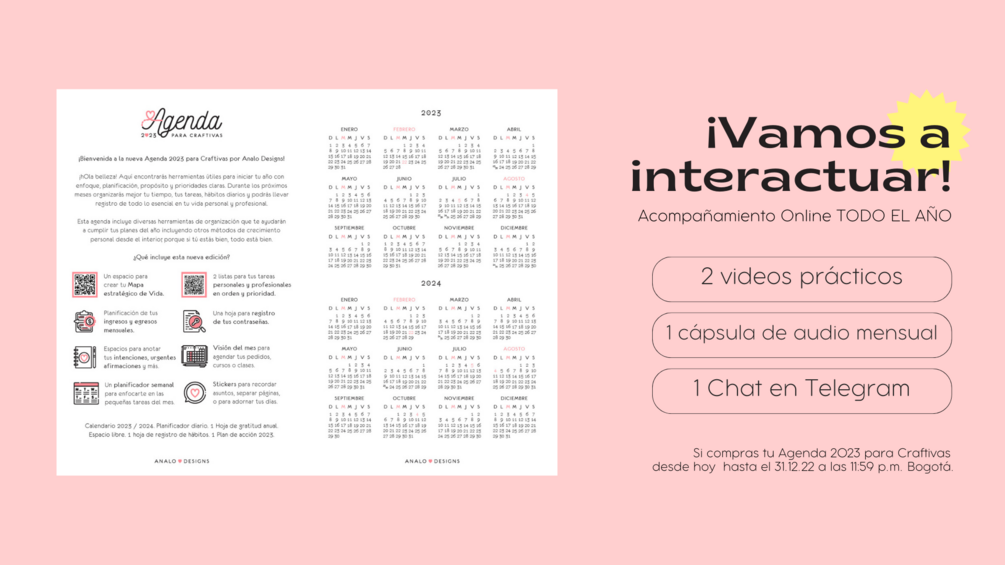 Es tu momento de intentar una vez más y esta vez con acompañamiento, porque la segunda edición de Agenda 2023 para Craftivas es interactiva.